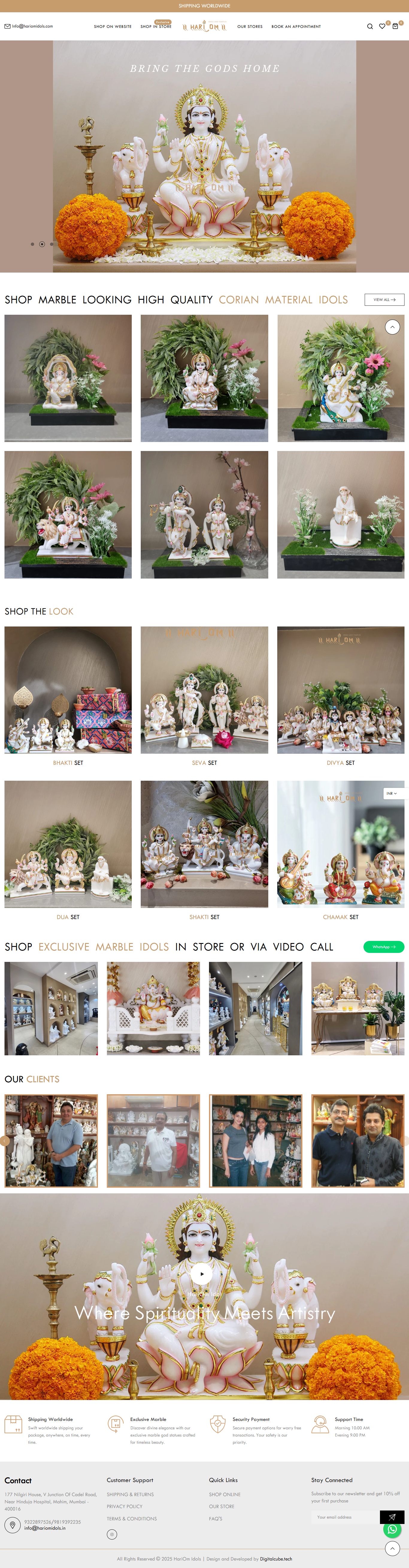 Hri Om Idols is a heritage brand that designs and manufactures intricately crafted metal and marble idols for temples, homes, and gifting. With roots in Indian tradition and a clientele spanning spiritual leaders to NRIs, they needed a digital storefront that offered the sanctity of a temple and the sophistication of luxury retail.